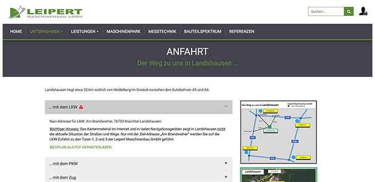 „Machined by Leipert“ – die Website der Leipert Maschinenbau GmbH.